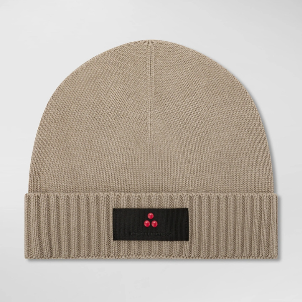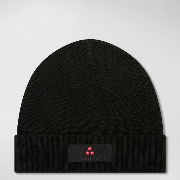 Caldo berretto in misto lana e cachemire, morbido e avvolgente, con risvolto a coste e l’iconico logo Peuterey trilogy